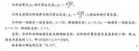 解析 此题有一定专业性,对于理论知识扎实的考生来说,很简单,主要考核压杆临界力大小的判断。