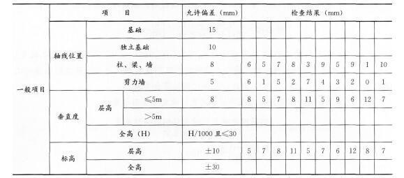 问题 某办公楼工程,建筑面积45000m2,钢筋混凝土框架一剪力墙结构,地下1层,地上12层,层高5m,抗震等级一级。填充墙采用加气混凝土砌块。地下工程防水为混凝土自防水和外粘卷材防水。 施工过程中,发生了下列事件: 事件一:项目部按规定向监理工程师提交调直后HRB400Eφ12钢筋复试报告,主要检测数据为:抗拉强度实测值561N/mm2,屈服强度实测值460N/mm2,实测重量0.816kg/m(HRIM00Eφ12钢筋:屈服强度标准值400N/mm2,极限强度标准值540N/mm2,理论重量0.888kg/m)。 事件二:五层某施工段现浇结构尺寸检验批验收表(部分)如下: 事件三:监理工程师巡视第四层填充墙砌筑施工现场时,发现所有加气混凝土砌块填充墙墙体均直接从结构楼面开始砌筑,砌筑到梁底并间歇7d再将其补砌挤紧。 事件四:在地下防水工程质量检查验收时,监理工程师对防水混凝土强度、抗渗性能和细部节点构造进行了检查,提出了整改要求。 问题: 1.事件一中,计算钢筋的强屈比、屈强比(超屈比)、重量偏差(保留两位小数),并根据计算结果分别判断该指标是否符合要求。 2.事件二中,指出验收表中的错误,计算表中正确数据的允许偏差合格率。 3.根据《砌体结构工程施工质量验收规范》GB50203--2011,指出事件三中填充墙砌筑过程中的错误做法,并分别写出正确做法。 4.事件四中,地下工程防水分为几个等级?I级防水的标准是什么?防水混凝土验收时,需要检查哪些部位的设置和构造做法?