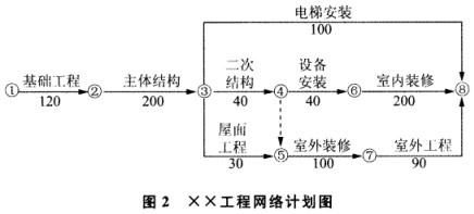 问题 【背景资料】 某建设工程,建筑面积3.8万平方米,地下1层,地上16层。施工单位(以下简称“乙方”)与建设单位(以下简称“甲方”)签订了施工总承包合同,合同期600d。合同约定,工期每提前(或拖后)1d奖励(或罚款)1万元。乙方将屋面和设备安装两项工程的劳务进行了分包。分包合同约定,若造成乙方关键工作的工期延误,每延误1d,分包方应赔偿损失1万元。主体结构混凝土施工使用的大模板采用租赁方式。租赁合同约定,大模板到货每延误1d,供货方赔偿1万元。乙方提交了施工网络计划,并得到了监理单位和甲方的批准。网络计划图如图2(时间单位:d)所示。 施工过程中,发生了以下事件。事件一:底板防水工程施工时,因特大暴雨突发洪水,造成基础工程施工工期延长5d,因工人窝工和施工机械闲置造成乙方直接经济损失10万元。事件二:主体结构施工时,大模板未能按期到货,造成乙方主体结构施工工期延长10d,直接经济损失20万元。事件三:屋面工程施工时,乙方的劳务分包方不服从指挥,造成乙方返工,屋面工程施工工期延长3d,直接经济损失0.8万元。事件四:中央空调设备安装过程中,甲方采购的制冷机组因质量问题退换货,造成乙方设备安装工期延长9d,直接费用增加3万元。事件五:因为甲方对外装修设计的色彩不满意,局部设计变更通过审批后,使乙方外装修晚开工30d,直接经济损失0.5万元。其余各项工作,实际完成工期和费用与原计划相符。 【问题】 1.用符号或文字写出该网络计划的关键线路。 2.指出乙方向甲方索赔成立的事件,并分别说明索赔内容和理由。 3.分别指出乙方可以向大模板供货方和屋面工程劳务分包方索赔的内容和理由。 4.该工程实际总工期多少天?乙方可得到甲方的工期补偿为多少天?工期奖(罚)款是多少万元? 5.乙方可得到各劳务分包方和大模板供货方的费用赔偿各是多少万元? 6.如果只有室内装修工程有条件可以压缩工期,在发生以上事件的前提条件下,为了能最大限度地获得甲方的工期奖,室内装修工程工期至少应压缩多少天?