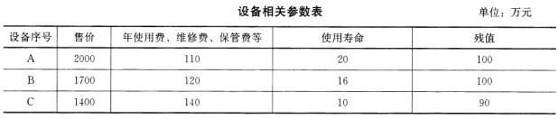 背景某工程需购置某设备一台,经市场调查有三种型号设备满足要求,相关参数如下表所示(采购当年贷款复利利率为8%):问题对上述各方案进行列试计...