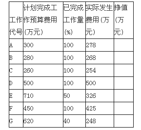 解析 (1)挣值法的三个参数(费用值)为: 1)BCWS:计划完成工程预算费用,是根据预算安排,在某一时刻应当完成的工作(或部分工作),以预算为标准所需的资金总额。 2)BCWP:已完成工作预算费用,是指某一时间已经完成的工作(或部分工作),以批准认可的预算为标准所需的资金总额。 3)ACWP:已完成工作实际费用,是指到某一时刻为止,已完成的工作(或部分工作)所实际花费的总金额。 (2)计算结果如下表所示: 计算结果汇总表 (3)14周末累计的计划完成工作预算费用BCWS为4430万元,已完成工作实际费用ACWP为3187万元。 (4)14周末的CV与SV 1)费用偏差:CV=BCWP-ACWP=3297-3187=110万元,由于CV为正,说明费用节支。 2)进度偏差:SV=BCWP-BCWS=3297-4430=-1133万元,由于SV为负,说明进度拖后。 (5)14周末的CPI与SPI 1)费用绩效指数:CPI=BCWP/ACWP=3297/3187=1.035,由于CPI>1,说明费用节支。 2)进度绩效指数:SPI=BCWP/BCWS=3297/4430=0.744万元,由于SP1%1,说明进度拖后。