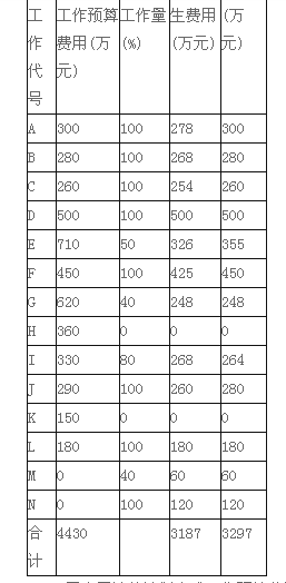 1.背景某施工项目进展到第15周后,对前14周的工作进行统计检查,有关情况如下表所示:续表注:工作M、N原没有计划,统计时已经进行了,...