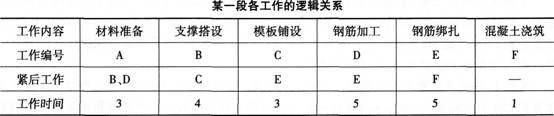 问题 某人防工程,建筑面积5000m2,地下1层,层高4m,基础埋深为自然地面以下6.5m,建设单位委托监理单位对工程实施全过程监理,建设单位和某施工单位根据《建设工程施工合同(示范文本)》(GF—2013—201)签订了施工承包合同。工程施工过程中发生了下列事件: 事件1:施工单位进场后,根据建设单位提供的原场区内方格控制网坐标进行该建筑物的定位测设。 事件2:工程楼板组织分段施工,某一段各工作的逻辑关系见下表。 事件3:砌体工程施工时,监理工程师对工程变更部分新增构造柱的钢筋做法提出疑问。 事件4:工程在设计时就充分考虑“平战结合、综合使用”的原则,平时用作停车库,人员通过电梯或楼梯通道上到地面。工程竣工验收时,相关部门对主体结构、建筑电气、通风空调、装饰装修等分部工程进行了验收。 问题 1.事件1中,建筑物细部点定位测设有哪几种方法 本工程最适宜采用的方法是哪一种 2.根据事件2表中给出的逻辑关系,绘制双代号网络计划图,并计算该网络计划图的工期。 3.事件3中,顺序列出新增构造柱钢筋安装的过程。 4.根据人防工程的特点和事件4中的描述,本工程验收时还应包含哪些分部工程