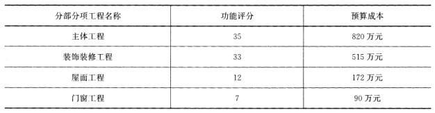 问题 对某个项目的各项分部工程进行功能评分如下,计算得出相应各项的预算成本: 从上表中数值看出,()成本比重偏高,应做重点分析,寻求降低成本的措施。