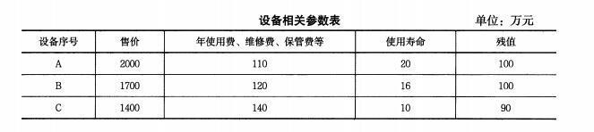 背景某工程需购置某设备一台,经市场调查有三种型号设备满足要求,相关参数如下表所示(采购当年贷款复利利率为8%): 2.问题对上述各方案进行列试计...