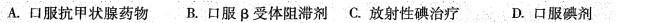 解析 A 患者怕热、心悸、出汗多,体重下降,甲状腺弥漫性肿大,心率增快, 诊断为原发性甲亢。患者为女青年,症状不重,甲状腺轻度肿大,应首选抗甲状腺药物治疗。受体阻 滞剂能通过降低心率改善临床症状,不能从根本上降低甲亢的高代谢状况,临床上仅作为辅助治疗。放 射性碘治疗在欧美国家是成人甲亢的首选疗法,但我国应用较少。口服碘剂仅应用于术前准备和甲危 的治疗。
