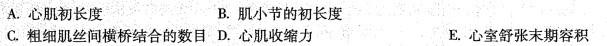 解析 D参阅【2007N05】。判断等长调节和异长调节的方法,就是看调节过程中是否有心肌细胞初长度 的改变,ABD项都涉及心肌细胞初长度的政变,因此是异长调节。只有通过改变心肌收缩力(D)进行的调 节才是等长调节。不同的初长度可改变心肌细胞粗细肌丝间横桥结合的数目,因此C项也是异长调节。