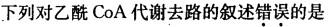 解析 A [考点]糖、脂代谢的相互联系 [分析]乙酰CoA的重要去路是经三羧酸循环被彻底氧化,同时放出能量供机体所需。它还作为原料参与胆固醇和酮体的合 成。但乙酰CoA不能用来合成葡萄糖,因它不能转变成丙酮酸(丙酮酸脱氢酶复合体 催化的反应不可逆行),它只能进人三羧酸循环被氧化掉,故不能沿糖异生途径合成葡萄糖。