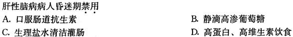 解析 D [考点]肝性脑病的治疗 [分析]肝性脑病病人昏迷期应该禁食 蛋白质。
