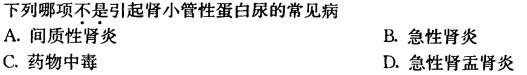 解析 B [考点]肾小管性蛋白尿 [分析]间质性肾炎、药物中毒、急性肾盂肾炎和重金属中毒均可引起肾小管损伤,出现肾小管性蛋白尿,而急性肾炎是出 现肾小球性蛋白尿。