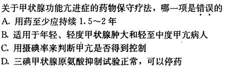 解析 C [考点]甲亢药物治疗的停药指标 [分析]甲状腺功能亢进症的药物保守疗法主要适用于年轻、轻度甲状腺肿大和轻 至中度甲亢病人,或无法耐受手术的病人。 服药应从足量开始,至症状或T3、T4恢复正常即可减量,减至维持量时应维持1.5? 2年。如服药过程中出现甲状腺较前肿大更 明显,或血管杂音更明显,可加用甲状腺 片。三碘甲状腺原氨酸抑制试验和TRH兴 奋试验正常,或TRAb明显下降或转阴可 以停药。因此,选项C提示用摄碘率来判 断甲亢是否得到控制是错误的。
