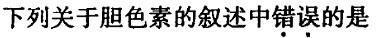 A.它是铁卟啉化合物在体内主要分解代谢产物的总称B.胆色素包括胆红素、胆绿素、胆素原、胆素等C.胆红素经一系列的加氢还原过程最终生成胆素D.胆...