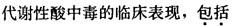 解析 ABD [考点]代谢性酸中毒的临床表现 [分析]代谢性酸中毒的临床表现包括:呼吸深快,呼出气带有酮味,病人面颊潮红,心率加快,血压偏低,可出现腱反射减弱或消失,神志不清或昏迷。耳前叩击试 验阳性是低钙的体征。