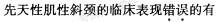 解析 先天性肌性斜颈是一侧胸锁乳突肌纤维性挛缩,导致颈部和头面部偏斜畸形。臀位或产钳助产者发生率增加。其临床表现是:婴儿出生后无意中发现一侧胸锁乳突肌出现肿块.2?3周后逐渐变硬,半年左右肿块逐渐消失,但胸锁乳突肌纤维性挛缩、变短,呈条索状,牵拉枕部,头偏向患侧,下颂转向健侧肩部。随生长发育,双侧面部不对称,健侧饱满患侧小,两眼不在同一水平,严重者可有颈椎侧凸畸形。