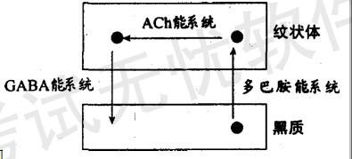 解析 ①碑酸戊糖途径产生的NADPH可用于维持红细胞中谷胱甘肽的还原状态。若红 细胞缺觫乏磷凌酸戊糖途径的关键酶6-磷酸葡萄糖脱氢酶(G6PD),则红细胞不能得到充足的NADPH,使谷 胱甘肽难以保持还原状态,此时红细胞易于破 裂,发生溶血性贫血。患者常因食用蚕豆而发 病,故称蚕豆病。②黑质和纹状体之间有许多 往返的纤维联系(如图),从黑质→纹状体的纤 维是多巴胺能系统;从纹状体→黑质的纤维是 γ-氨基丁酸(GABA)能系统;此外,在纹状体内 部还有乙酰胆碱(ACh)能系统。多巴胺能系统 的作用是抑制ACh递质系统的功能。因此当黑 质受损时(帕金森病),多巴胺生成障碍,脑内多巴胺含量下降,对ACh能系统的抑制作用减弱,机体出现ACh功能亢进的症状。③苯酮酸尿症是由于 缺乏苯丙氨酸羟化海。④镰刀形贫血是患者血红蛋白β亚基第6位的谷氨酸被取代。