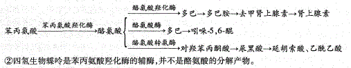 解析 ①酪氨酸分解代谢的产物包括肾上腺素、多巴胺和尿黑酸等。.