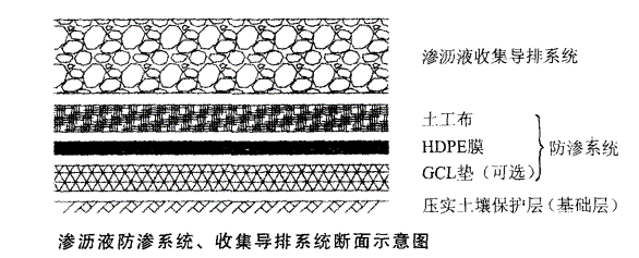 解析 垃圾卫生填埋场填埋区工程的结构层次从上至下主要为渗沥液收集导排系统、防 渗系统和基础层。系统结构形式如下图所示。