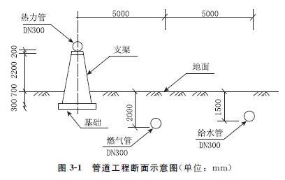 某管道铺设工程项目,长1km,工程内容包括燃气、给水、热力等项目,热力管道采用支架铺设,合同工期80天,断面布置如图3-1所示。建设单位采用公开招标方式发...