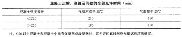 解析 1.【参考答案】设计导流管涵施工方案时,必须注意:河道管涵的断面必须满足施工期间河水最大流量要求;管涵强度必须满足上部荷载要求;管涵长度必须满足支架地基宽度要求。解题思路:考点应为临时管涵施工要求,本题属于施工规范与实践应用综合型考题。河道管涵首先应满足过流断面要求,这是前提;其次是满足在河道管涵顶部作为满堂支架基础的荷载及宽度要求。临时涵管导流还有以下技术要求:(1)宜采用工厂预制钢筋混凝土管的成品管节,管节断面形式分为圆形、椭圆形、卵形、矩形等;(2)管涵颖采用无混凝土(或砌体)基础、管体直接设置在天然地基上时,应按照设计要求将管底土层夯压密实,并做成与管身弧度密贴的弧形管座,安装管节时应注意保持完整。管底土层承载力不符合荷载要求时,应按规范要求进行处理、加固;(3)管涵应保证过流量不小于河道最高流量;进出水口的沟床应整理直顺,与上下游导流河道连接顺畅、稳固;(4)采用预制管埋设的管涵施工,应符合现行国家标准《给水排水管道工程施工及验收规范》GB50268有关规定。 2.【参考答案】支架专项方案除考虑预留拱度外,还应考虑支架非弹性变形、支架基础沉陷和结构物本身受力后各种变形。解题思路:本题考点为支架法施工桥梁内容,属于施工技术应用型考题。支架法现浇预应力混凝土连续梁,预留拱度应考虑支架受力产生的非弹性变形、支架基础沉陷和结构物本身受力后各种变形组合。支架发连续梁桥施工的内容:(1)支架的地基承载力应符合要求,必要时,应采取加强处理或其他措施。(2)各种支架和模板安装后,宜采取预压方法消除拼装间隙和地基沉降等非弹性变形。(3)安装支架时,应根据梁体和支架的弹性、非弹性变形,设置预拱度。(4)支架底部应有良好的排水措施,不得被水浸泡。(5)浇筑混凝土时应采取防止支架不均匀下沉的措施。 3.【参考答案】背景介绍的支架基础预压做法不足之处:采用施工荷载对支架基础进行预压。正确做法:预压荷载为上部结构自重与钢管支架、模板重量之和(施工荷载)的1.2倍。解题思路:考点应为支架施工技术要求。本题为工程实践型考题。支架基础预压主要目的:消除地基在施工荷载下的非弹性变形;检验地基承载力是否满足施工荷载要求;防止由于地基沉降产生梁体混凝土裂缝。现行《钢管满堂支架预压技术规范》有关规定:地基预压荷载:在计算地基预压荷载时,应将预压区域划分成若干单元,单元划分应根据荷载分布以及支架布置形式确定;每个单元内的地基预压荷载应为此单元内上部结构自重与钢管支架、模板重量之和的1.2倍,预压荷载在每个单元内宜采用均布形式;上部结构截面形式或支架布置变化较大处单元划分宜加密,使单元内实际荷载强度的最大值不超过该单元内荷载强度平均20%。支架预压荷载:在计算支架预压荷载时,应将预压支架上荷载划分成若干单元,单元划分应根据上部结构荷载分布形式确定;每个单元内的支架预压荷载应为此单元内上部结构自重及未铺设的模板重量之和的1.1倍,预压荷载在每个单元内宜采用均布形式;上部结构截面形式变化较大处单元划分宜加密,使单元内实际荷载强度的最大值不超过该单元内荷载强度平均值的10%。 4.【参考答案】施工基本流程:模板支架施工→钢筋和预应力筋安装→内模安装→浇筑混凝土→拆除侧模→预应力施工→拆除底、支架。现浇混凝土施工要点:分跨、分次浇筑;合理设置和处理施工缝。解题思路:考点应为现浇钢筋混凝土施工要求,属于补全型考题。除参考答案外,应依据《城市桥梁工程施工与质量验收规范》CJJ2第7.5节内容进行简述。(1)浇筑混凝土前,应对支架、模板、钢筋和预埋件进行检查,确认符合设计和施工设计要求。模板内的杂物、积水、钢筋上的污垢应清理干净。模板内面应涂刷脱模剂,并不得污染钢筋等。(2)自高处向模板内倾卸混凝土时,其自由倾落高度不得超过2m;当倾落高度超过2m时,应通过串筒、溜槽或振动溜管等设施下落;倾落高度超过10m时应设置减速装置。(3)混凝土应按一定厚度、顺序和方向水平分层浇筑,上层混凝土应在下层混凝土初凝前浇筑、捣实,上下层同时浇筑时,上层与下层前后浇筑距离应保持1.5m以上。混凝土分层浇筑厚度不宜超过下的规定。混凝土分层浇筑厚度 (4)浇筑混凝土时,除少量塑性混凝土可用人工捣实外,应采用振动器振捣。振捣时不得碰撞模板、钢筋和预埋部件。振捣持续时间宜为20~30s,以混凝土不再沉落、不出现气泡、表面呈现浮浆为度。(5)混凝土的浇筑应连续进行,如因故间断时,其间断时间应小于前层混凝土的初凝时间。混凝土运输、浇筑及间歇的全部时间不得超过下表的规定。混凝土运输、浇筑及间歇的全部允许时间(min) (6)当浇筑混凝土过程中,间断时间超过上条规定时,应设置施工缝,并应遵守下列规定:施工缝宜留置在结构受剪力和弯矩较小、便于施工的部位,且应在混凝土浇筑之前确定。施工缝不得呈斜面;先浇混凝土表面的水泥砂浆和松弱层应及时凿除。凿除时的混凝土强度,水冲法应达到0.5MPa;人工凿毛应达到2.5MPa;机械凿毛应达到10MPa;经凿毛处理的混凝土面,应清除干净,在浇筑后续混凝土前,应铺10~20mm同配比的水泥砂浆;重要部位及有抗震要求的混凝土结构或钢筋稀疏的混凝土结构,应在施工缝处补插锚