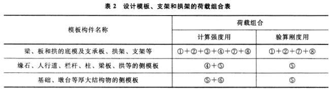 解析 设计模板、支架和拱架时应按表2进行荷载组合。 注:表中代号意思如下:①模板、拱架和支架自重;②新浇筑混凝土、钢筋混凝土或圬工、砌体的自重力;③施工人员及施工材料机具等行走运输或堆放的荷载;④振捣混凝土时的荷载;⑤新浇筑混凝土对侧面模板的压力;⑥倾倒混凝土时产生的水平向冲击荷载;⑦设于水中的支架所承受的水流压力、波浪力、流冰压力、船只及其他漂浮物的撞击力;⑧其他可能产生的荷载,如风雪荷载、冬期施工保温设施荷载等。所以计算桥梁墩台侧模强度用⑤+⑥,即新浇筑混凝土对侧面模板的压力和倾倒混凝土时产生的水平向冲击荷载。