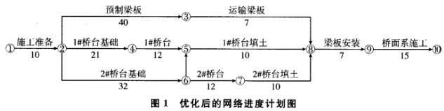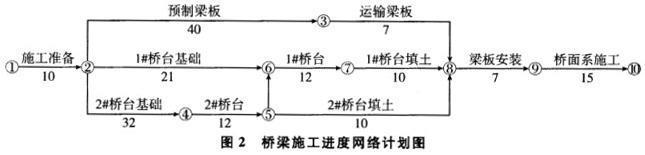 【背景资料】A公司承建城市道路改扩建工程,其中新建一座单跨简支桥梁,节点工期为90d。项目部编制了网络进度计划如图2所示(单位:d)。公司技术负责人在...
