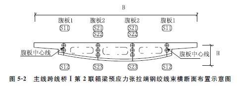 问题 背景资料 某公司承建一座城市互通工程,工程内容包括:①主线跨线桥(Ⅰ,Ⅱ)、②左匝道跨线桥、③左匝道一、④右匝道一、⑤右匝道二等五个子单位工程,平面布置如图5-1所示,两座跨线桥均为预应力混凝土连续箱梁桥,其余匝道均为道路工程。主线跨线桥跨越左匝道一;左匝道跨线桥跨越左匝道一及主线跨线桥;左匝道一为半挖半填路基工程,挖方除就地利用外,剩余土方用于右匝道一:右匝道一采用混凝土挡墙路堤工程,欠方需外购解决;右匝道二为利用原有道路路面局部改造工程。 主线跨线桥Ⅰ的第2联为(30m+48m+30m)预应力混凝土连续箱梁,其预应力张拉端钢绞线束横断面布置如图5-2所示,预应力钢绞线采用公称直径Φ15.2mm高强低松弛钢绞线,每根钢绞线由7根钢绞线捻制而成。代号S22的钢绞线束由15根钢绞线组成,其在箱梁内的管道长度为108.2m。 由于工程位于交通主干道,交通繁忙。交通组织难度大。因此,建设单位对施工单位提出总体施工要求如下: (1)总体施工组织计划安排应本着先易后难的原则,逐步实现互通的各项交通通行任务; (2)施工期间应尽量减少对交通的干扰,优先考虑主线交通通行。 根据工程特点,施工单位编制的总体施工组织设计中,除了按照建设单位的要求确定了五个子单位工程的开工和完工的时间顺序外。还制定了如下事宜: 事件一:为限制超高车辆通行,主线跨线桥和左匝道跨线桥施工期间,在相应的道路上设置车辆通行限高门架,其设置的位置选择在图5-1中所示的A-K的道路横断面处。 事件二,两座跨线桥施工均在跨越道路的位置采用钢管-型钢(贝雷桁架)组合门式支架方案,并采取了安全防护措施。 事件三,编制了主线跨线桥Ⅰ的第2联箱梁预应力的施工方案如下: (1)该预应力管道的竖向布置为曲线形式、确定了排气孔在管道中的位置; (2)预应力钢绞线的张拉采用两端张拉方式; (3)确定了预应力钢绞线张拉顺序的原则和各钢绞线束的张拉顺序; (4)确定了预应力钢绞线张拉的工作长度为100cm,并计算了钢绞线的用量。 <1> 、写出五个子单位工程符合交通通行条件的先后顺序。(用背景资料中各个子单位工程的代号“①~⑤”及“→”表示) <2> 、事件一中,主线跨线桥和左匝道跨线桥施工期间应分别在哪些位置设置限高门架?(用图5-1中所示的道路横断面的代号“