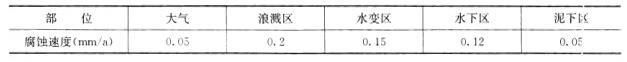 问题 海港工程大型钢筋混凝土承台以钢管桩为基桩,承台顶标高+5m、底标高+1.5m,工程设计高水位+3.0m,设计低水位+1.0m,钢材在海水中的腐蚀速度如下表。 为保证钢管桩使用20年,钢管桩壁厚的富余量至少应为()mm。
