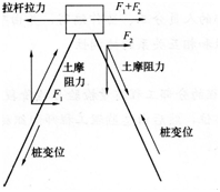 选项 A.桩在土中的弹性嵌固作用 B.桩前面的土体抗力 C.前压斜桩轴向力的水平分力 D.后拉斜桩轴向力的水平分力 E.前后斜桩水平分力之和
