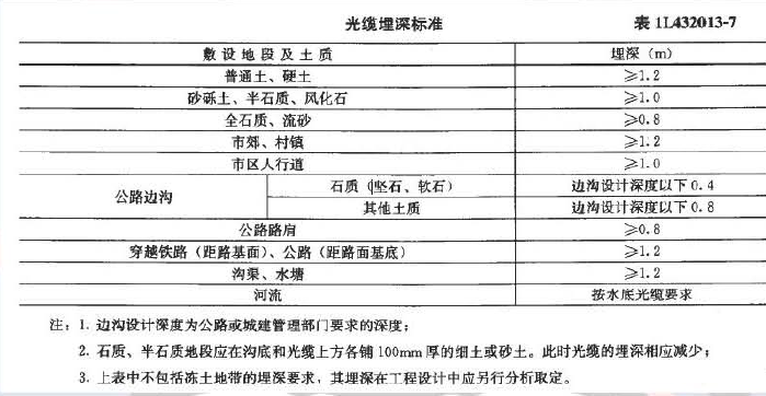 问题 下列光缆埋深大于等于1.2米的有哪些(  )。