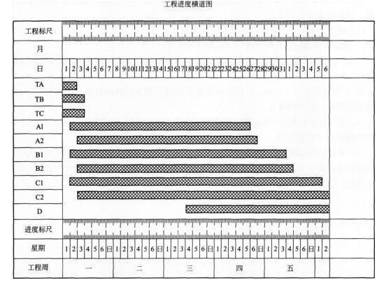 问题 1.背景 某项目经理部负责某本地网直埋光缆线路环网工程的施工,合同规定采用包工不包料的方式承包,工程的路由报建工作已由建设单位完成,工程定于4月15日开工,工期37天。工程包括三个中继段,A中继段长50km,B中继段长60km,C中继段长70km,三个中继段首尾相连构成一个环形网结构。 项目经理部将三个中继段均分为两个作业组进行流水作业;每个中继段的作业组中,1组负责挖沟及障碍处理,2组负责放缆、回填及标石的埋设,各组的日进度均为2km;三个中继段的路由复测工作分别由TA、TB、TC三个作业组完成。光缆盘长为标准盘长2km。由于施工单位只能为项目经理部配备一套测试仪表及一台熔接设备,因此项目经理部安排三个中继段的接续测试工作均由D组负责完成。各中继段的竣工资料整理工作包含在施工过程中完成,不再单独安排时间编制。各组的工作量、完成时间以及需完成的工作见下表。 1.背景 某项目经理部负责某本地网直埋光缆线路环网工程的施工,合同规定采用包工不包料的方式承包,工程的路由报建工作已由建设单位完成,工程定于4月15日开工,工期37天。工程包括三个中继段,A中继段长50km,B中继段长60km,C中继段长70km,三个中继段首尾相连构成一个环形网结构。 项目经理部将三个中继段均分为两个作业组进行流水作业;每个中继段的作业组中,1组负责挖沟及障碍处理,2组负责放缆、回填及标石的埋设,各组的日进度均为2km;三个中继段的路由复测工作分别由TA、TB、TC三个作业组完成。光缆盘长为标准盘长2km。由于施工单位只能为项目经理部配备一套测试仪表及一台熔接设备,因此项目经理部安排三个中继段的接续测试工作均由D组负责完成。各中继段的竣工资料整理工作包含在施工过程中完成,不再单独安排时间编制。各组的工作量、完成时间以及需完成的工作见下表。 施工班组工作量需要时间需完成的工作A150km25天负责A中继段的光缆沟开挖、障碍处理工作A250km25天负责A中继段的放缆、回填及标石埋设工作B160km30天负责B中继段的光缆沟开挖、障碍处理工作B260km30天负责B中继段的放缆、回填及标石埋设工作C170km35天负责c中继段的光缆沟开挖、障碍处理工作C270km35天负责c中继段的放缆、回填及标石埋设工作TA50km2天负责A中继段的路由复测TB60km3天负责B中继段的路由复测TC70km3天负责C中继段的路由复测D96km20天负责各中继段的光缆接头及成端制作、中继段测试工作 2.问题 (1)本工程的各项主要工作的顺序应如何排列? (2)说明光缆接头和成端制作两项工作的先后顺序。 (3)说明本工程中项目经理部的工作分解步骤。 (4)本工程项目经理部采用流水作业法是否合适?说明流水作业应具备的条件。 (5)在考虑工序搭接的情况下,如果要求工期最短(时间按整天考虑)、费用最低,请绘制本工程包含放缆回填及埋设标石、路由复测、接续及测试、挖沟及障碍处理的横道图。 (6)如果时间按整天考虑,各中继段的作业组正常施工,在考虑流水作业的情况下,针对A中继段画出双代号网络图(假设