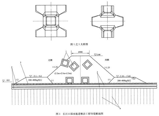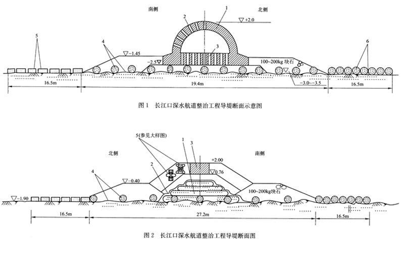 我国最大也是目前世界上规模最大的河口航道整治工程——长江口深水航道整治工程中的北导堤、南导堤、丁坝等是其主体水工建筑物,导堤的断面见下图1、图2、图3所示...