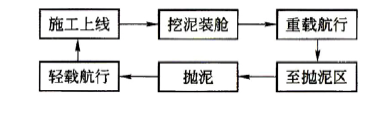 问题 4500m3 的耙吸挖泥船,挖泥施工中要保证航道正常通航,载重量2500m3,抛泥点15km, 挖泥航速2.5kn,重载航速8kn,轻载航速10kn,装舱时间0.55h,抛泥和掉头时间0.3h,2 台泥泵,10000m3/h,生产效率55%,工期1.5 年,三班作业,时间利用率75%,合同疏浚量 1508 万m3,设计断面工程量1224 万m3,综合单价18 元/m3。 问题: 画出耙吸式挖泥船的施工流程图。
