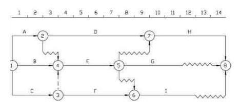 解析 本题考核的是总时差的计算。 工作E的总时差为“在不影响总工期的前提下,工作E可以利用的机动时间”。E工作紧后工作有3个。在双代号时标网络中,波形线为时差。E工作的时差为2、4、7中最小值。所以为2。 综上所述,正确选项为B。