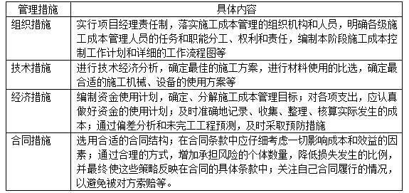 选项 A. 明确成本管理人员的工作任务和责、权、利 B. 对不同的技术方案进行技术经济分析 C. 防止分包商的索赔 D. 通过偏差原因分析预测未完工程施工成本