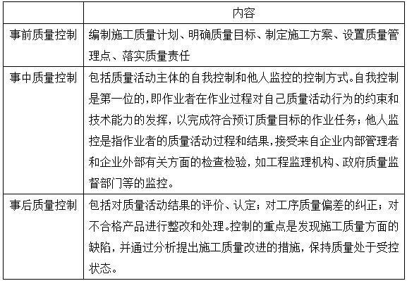 解析 本题考核的是建设工程项目质量控制系统。 质量控制的基本环节: 由上表可知,事中控制是指对质量活动的行为约束和对质量活动过程和结果的检查与监控。 综上所述,本题正确答案为A。