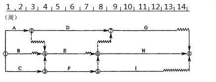 问题 某工程双代号时标网络计划如下图所示(时间单位:周),在不影响总工期的前提下,工作B可利用的机动时间为( )周。