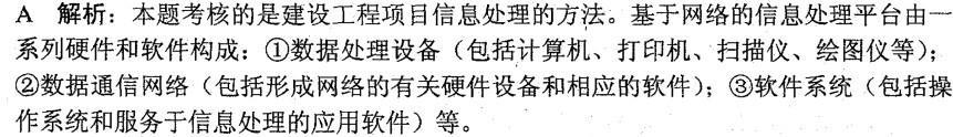 基于网络的信息处理平台是由一系列的( )构成。A.硬件和软件 B.文档资料C.专用网站 D.计算机网络