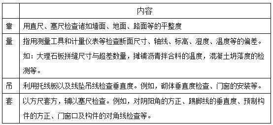 解析 本题主要考查施工现场质量检查方法。 实测法的手段可概括为“靠、量、吊、套”四个字。具体内容如下: CD项属于实测法检查,AB项属于目测法,E项属于理化试验法。 综上所述,本题正确答案为CD。