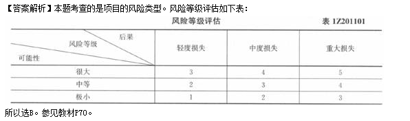 问题 根据《建设工程项目管理规范》(GB/T50326—2006)条文中的风险等级评价估表,如果某个风险事件将对项目造成中度损失,且发生的可能性很大。则该事件的风险等级为( )级。