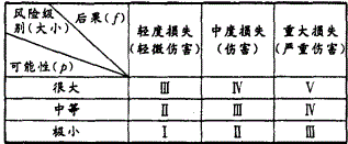 解析 根据对危险源的识别,评估危险源造成的风险可能性和大.小,对成险进行分级。GB/T28002推荐的简单的风险等级评估如下表所示,结果分为I (可忽略风险).、Ⅱ (可容许风险)、Ⅲ (中度风险)、Ⅳ(重大风险)、Ⅴ(不容许风险)五个风险等级。