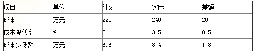 问题 某项目施工成本数据如下表,根据差额计算法,成本降低率提高对成本降低额的影响程度为( )万元。