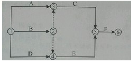某网络计划如下图,逻辑关系正确的是( )。A.E的紧前工作是BD B.A完成后同时进行CF C.AB均完成后进行E D.F的紧前工作是DE