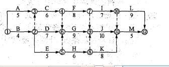 某工程双代号网络计划如右图所示,其关键线路有( )条。A.1 B.2 C. 3 D. 4