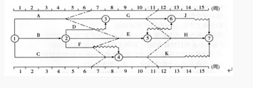 问题 某工程双代号时标网络计划执行到第6周末和第11周末时,检查其实际进度如下图前锋线所示,检查结果表明(  )。