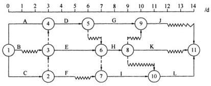 选项 A、关键线路是工作A、D、H、L组成的线路 B、关键线路是工作C、E、I、L组成的线路 C、工作G的总时差与自由时差相等 D、工作H的总时差为2天 E、工作D的总时差为1天