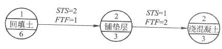 问题 某混凝土地面工程分为回填土、铺垫层和浇混凝土三个施工过程,其单代号搭接网络图如下所示,则铺垫层的最早开始时间为( )天。