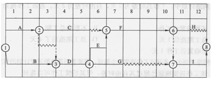 解析 2017版教材P130页1 .双代号时标网络计划是以时间坐标为尺度编制的网络计划,如图1Z203032-6所示。时标网络计划中应以实箭线表示工作,以虚箭线表示虚工作,以波形线表示工作的自由时差。故没有波形线的双向路,关键线路为1-3-4-5-6-7-8 ;所以关键工作为BDEI;所以答案为CDE