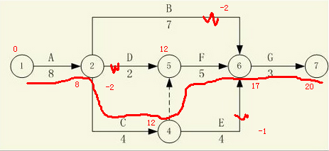 解析 2017版教材P138页 该项目的关键线路为:A—C—F—G。所以可以计算出D的总时差和自由时差均为2天。