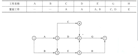 解析 2017版教材P128页 4、逻辑关系 网络图中工作之间的相互制约或相互依赖的关系称为逻辑关系,它包括工艺关系和组织关系,在网络中均应表现为工作之间的先后顺序。表格中给G工作的紧前工作为C和D两项工作,即做完C和D工作后就开始做G工作,而网络图中给出的是做完C、D和E三项工作后,才开始G工作,与表格中的逻辑关系不符,。