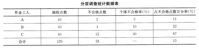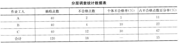 解析 通过分层调查表(见下表),可以明显看出是作业工人C影响了总体质量的水平。 所以C正确。